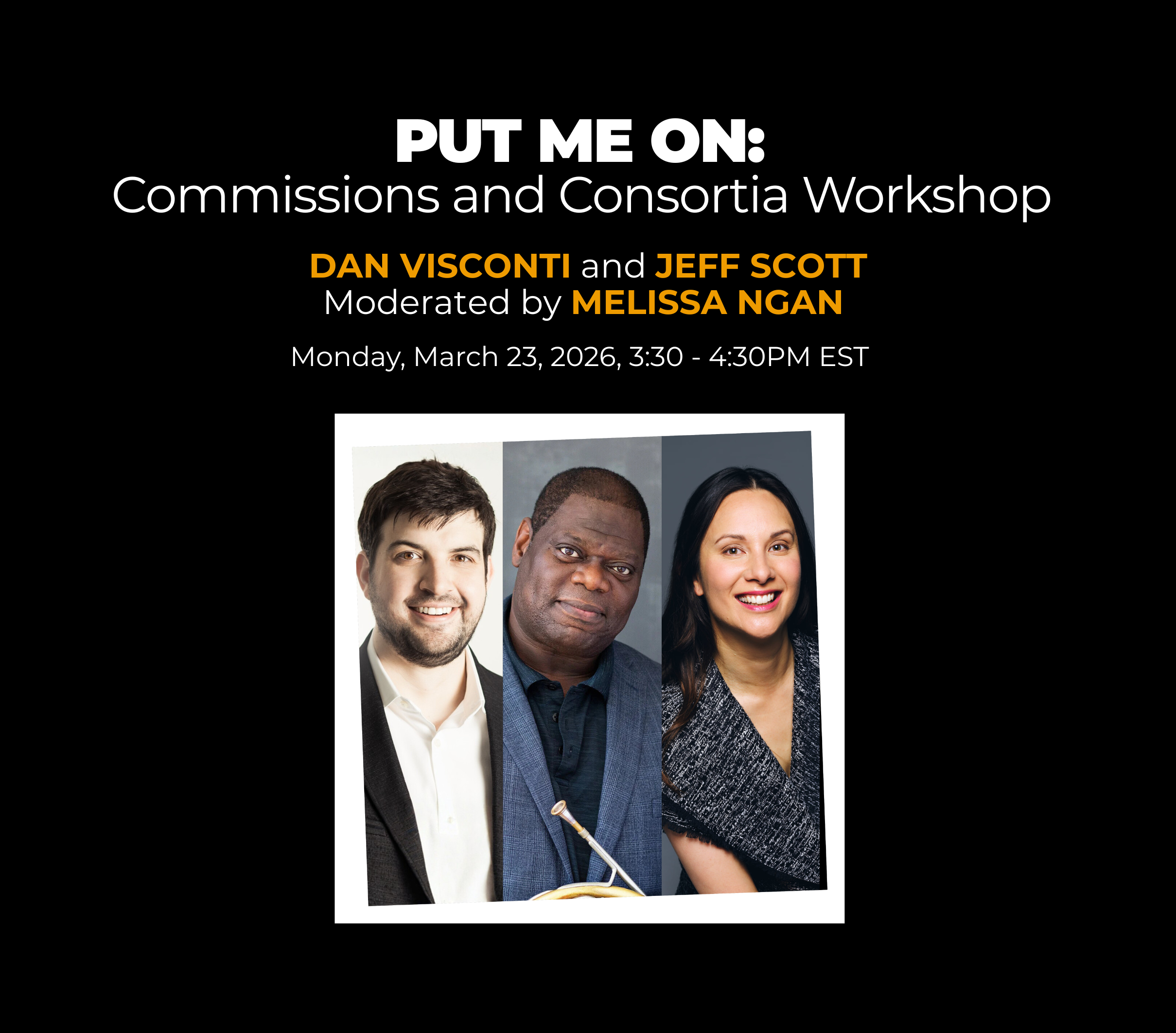 There’s much more to securing a commission or building a successful consortium than simply writing a great piece of music. In this candid conversation, Melissa Ngan from the American Composers Orchestra will be joined by composer and performer Jeff Scott and artist manager Dan Visconti of Visconti Arts to explore the behind-the-scenes realities of commissioning. Together, they’ll unpack how artists, managers, and partner organizations collaborate to navigate contracts, fee negotiations, consortium structures, and the delicate balance of honoring the composer’s voice while meeting institutional priorities.