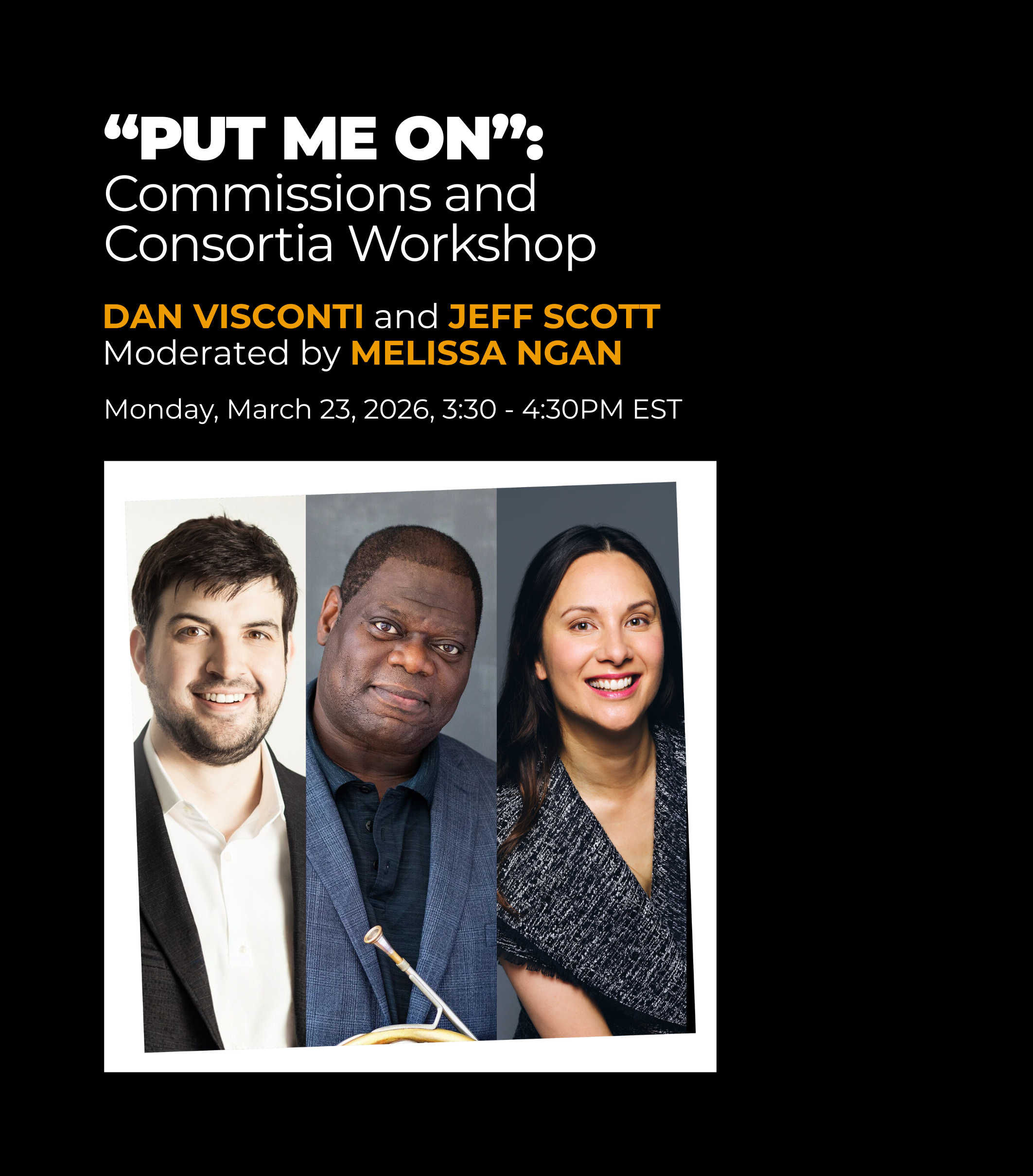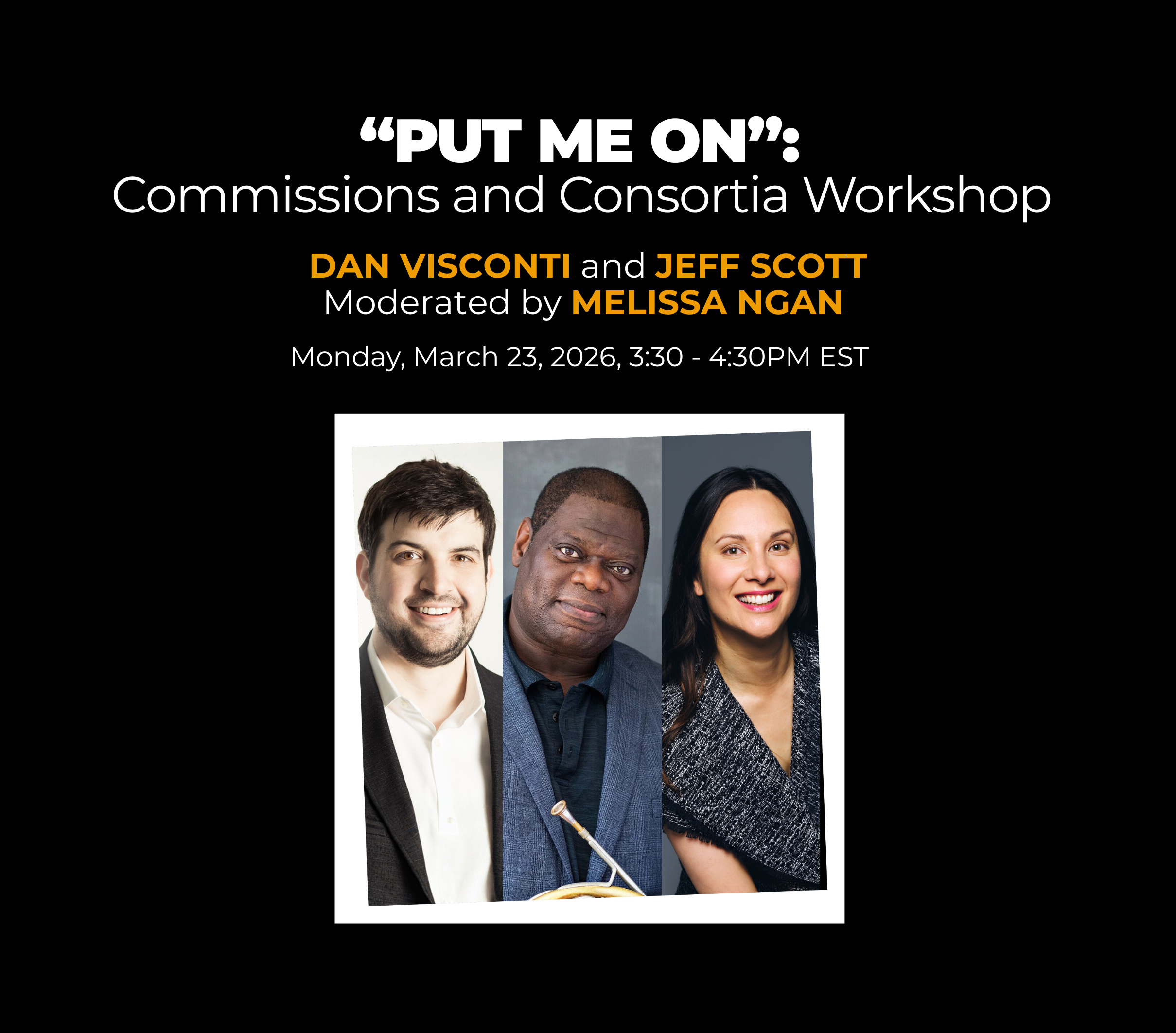 There is much more to securing a commission or building a successful consortium than simply writing a great piece of music. In this candid conversation, Melissa Ngan, President and CEO of American Composers Orchestra, will be joined by arts leader Dan Visconti of Visconti Arts and composer and performer Jeff Scott to explore the behind-the-scenes realities of commissioning. Together, they will unpack how artists, managers, and partner organizations collaborate to navigate contracts, fee negotiations, consortium structures, and the delicate balance of honoring the composer’s voice while meeting institutional priorities.