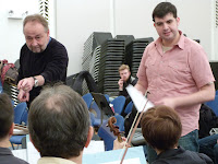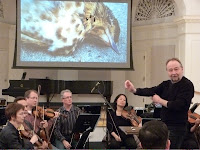 ACO & George ManahanThis process of exploration is a time-consuming and labored one, and it’s easy to see why most major orchestras might shy away from the rehearsal commitment in exploring such strange and uncharted territory. That’s why Simon and I are so psyched to have this tremendous opportunity to try out our work at several stages of completion. For the workshop on December 11th, we’ll be syncing a mockup video to some sample music for the strings in order to determine which electronics setups are possible—a prerequisite to developing the larger composition and an exciting point for beginning our explorations.